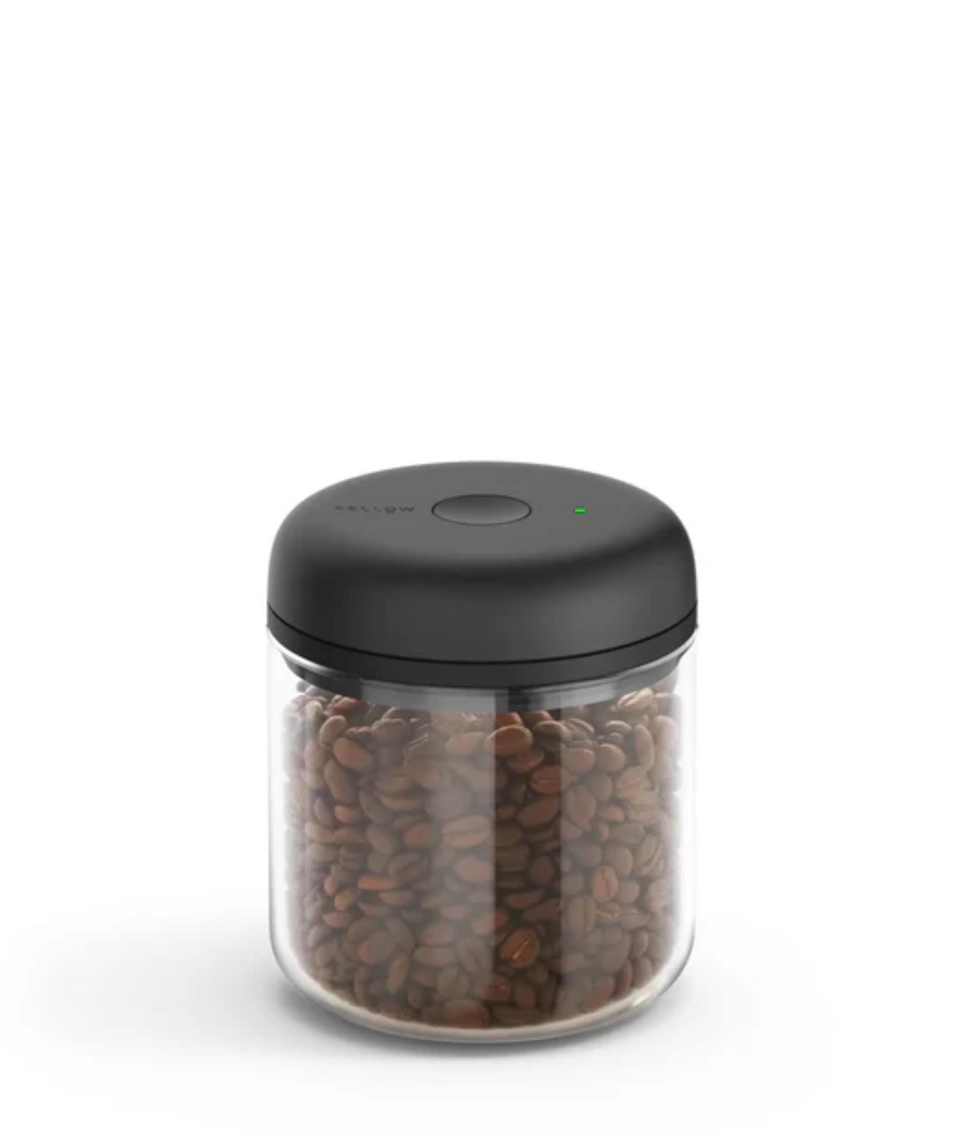 An elegant and effortless way to extend the lifespan of your coffee beans and other treats. Coffee beans oxidize over time, losing the flavor and moisture that makes your cup taste great. Enter Electric Atmos, a unique storage canister that pumps out air with the touch of a button and creates a sealed vacuum inside. It also continually monitors the vacuum status and will automatically top it off if needed, and the rechargeable battery lasts for four months of continuous use so your goods can stay fresh even after a long vacation. The LED on the lid indicates vacuum state, battery level, and more, plus it activates when lifted thanks to a built-in accelerometer so you can always know the status of your seal. Designed for coffee beans but open to all your other treats.